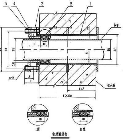 本公司生產的柔性防水套管是根據建筑科學研究院研制設計的S312/02S404標準圖集制造的。柔性防水套管主要用于管道穿過墻壁之處受有振動或有嚴密防水要求的構筑物,柔性防水套管穿墻處之墻壁,如遇非混凝土時應改用混凝土墻壁,而且必須將防水套管一次凝固于墻內;柔性防水套管廣泛用于建筑、化工、鋼鐵、自來水、污水處理等單位。
