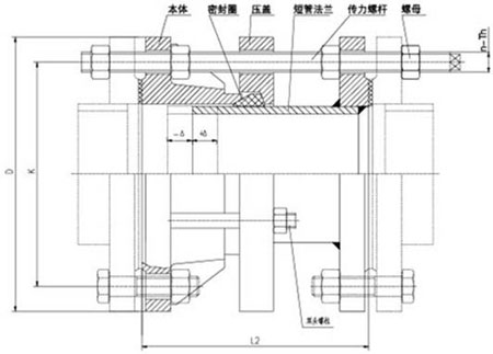 2.該產(chǎn)品采用金屬鑄造或焊接組成,松套部位選用梯形橡膠密封圈,在壓蓋和螺栓的作用下,利用橡膠壓縮彈性變形原理,迫使密封圈變形于接頭本體與伸縮管外壁之間進(jìn)行靜密封。